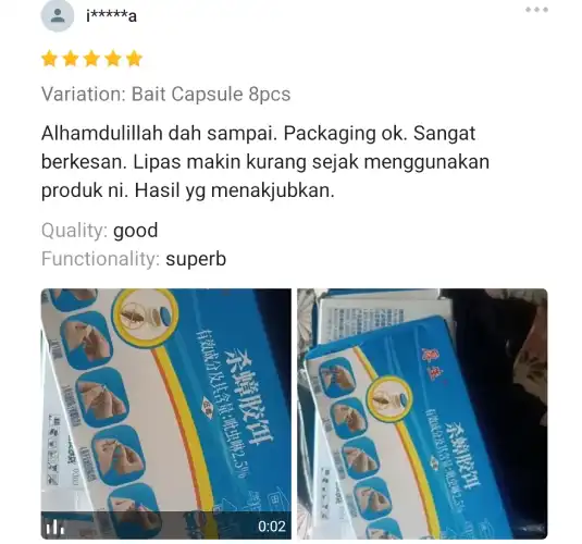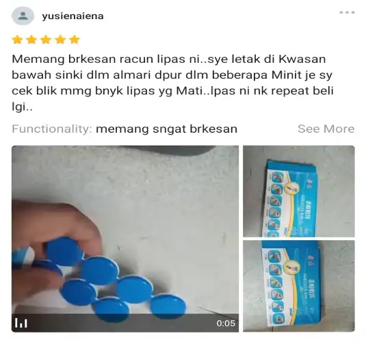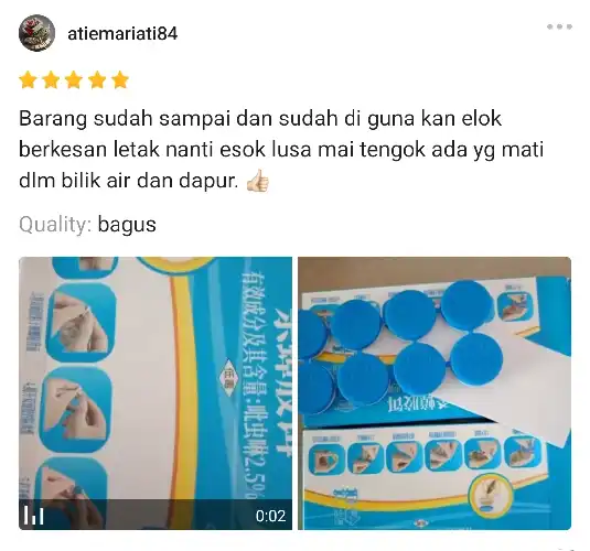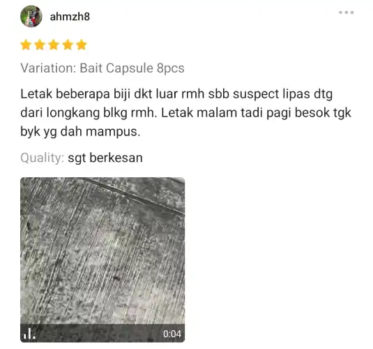 ✅Klaim ketahanan: Tahan lama — sehingga beberapa bulan, bergantung persekitaran & trafik lipas. Semak setiap 2–4 minggu.